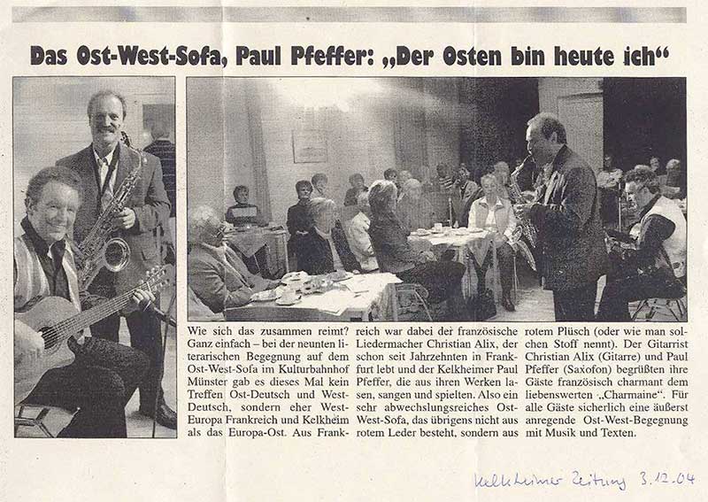 Er brachte französisches Lebensgefühl nach Premnitz, und davon eine ganze Menge: Chansonier Christian Alix. Am Freitag war er auf Einladung der Deutsch-Französischen Gesellschaft Premnitz zu Gast im „Fennblick“ und vermittelte mit seinen Chansons den Zuhörern das Gefühl, in einem Pariser Café zu sitzen….